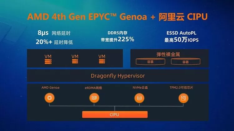 作为企业级实例,搭载第四代 AMD EPYC(霄龙)处理器的 g8a 和 g8ae 两款实例,得益于阿里云自研的“飞天+CIPU”架构,在计算、存储、网络、安全等领域的能力全面提升,在云上提供稳定、强劲、安全的算力,助力用户在云上加速业务创新。