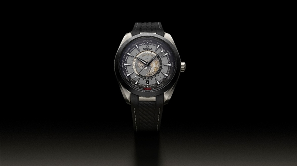 Aqua Terra世界时腕表的表壳为43毫米,其中一款采用轻巧且耐腐蚀的2级钛金属打造而成,堪称重磅之作。欧米茄采用激光技术打造出整个黑灰色表盘,包括其呈现的色彩、小时刻度以及城市名字等。表盘没有采用任何转印元素,“LONDON”字样的红色漆面则由手工工艺制成。为了呼应哑光表盘,这款腕表搭配经拉丝处理的黑色陶瓷表圈,指针和小时刻度均经黑化处理,并覆以白色Super-LumiNova夜光涂层,在黑暗环境中散发蓝色的光芒。腕表搭配一体式黑色橡胶表带,饰有灰色缝线,表扣采用2级钛金属制成,令腕表的整体风格大胆前卫且兼具运动风尚。
