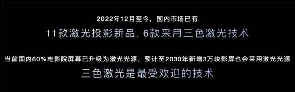 有业内观察家指出,伴随着三色激光投影产品线不断丰富,覆盖多个价位段,将有利于三色激光投影的出货量提升,智能投影行业也有望加快进入三色激光时代。