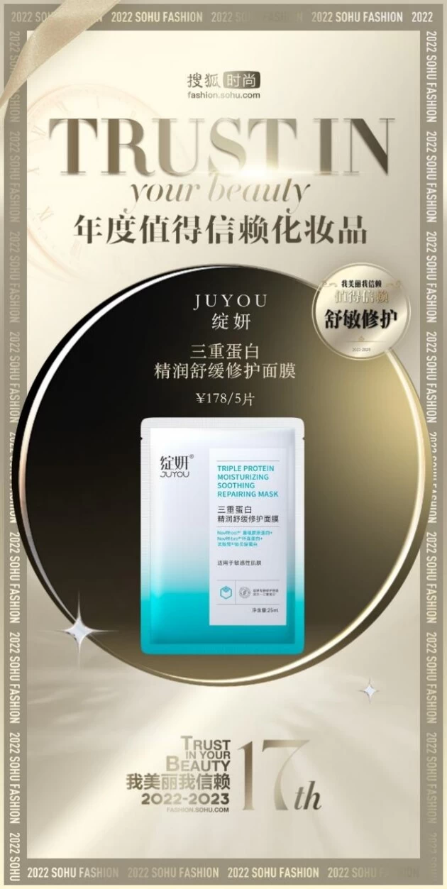 绽妍三重蛋白系列一经上市,好评不断,同时也获得了来自皮肤专家和行业的认可。目前,绽妍三重蛋白精润舒缓修护面膜荣获搜狐时尚我美丽·我信赖年度值得信赖舒敏修护单品奖,绽妍三重蛋白安润修护霜获得优麦医生功效性护肤品研选大奖年度屏障修护霜等奖项。