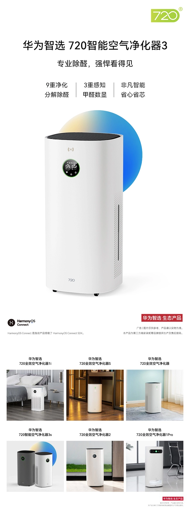 720健康科技携手华为智选推出:720智能空气净化器3