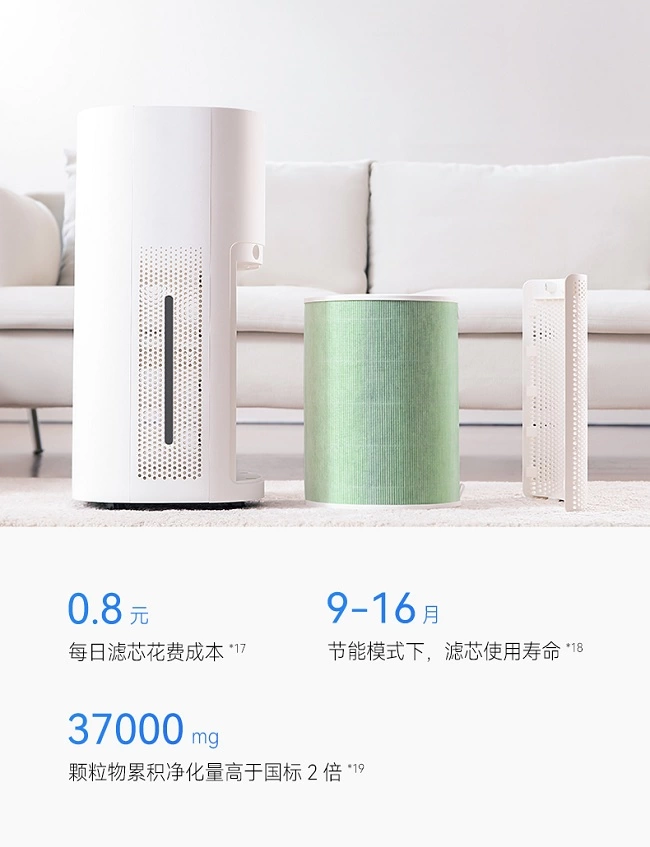 其他方面,净化器采用的滤芯使用寿命可达16个月每日滤芯花费成本仅0.88元。