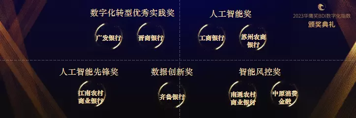 本次峰会同期举办(华鹰奖BDI数字化指数)奖项评选活动,在峰会现场颁发年度金融科技奖、移动银行奖、职业银行奖、场景金融创新奖等10项奖项并表彰优秀银行职业家。