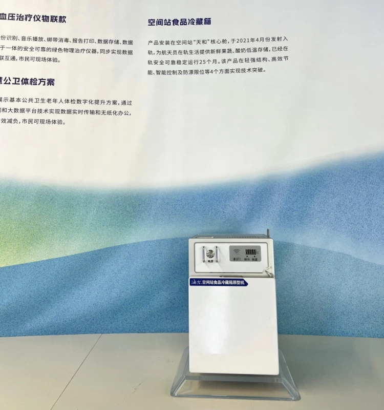 作为青岛市生物医药及医疗器械产业链的“链主”企业,海尔生物医疗通过科技创新,立足生命科学与医疗创新领域持续探索,其创新研发的航天冰箱、数字公卫体检方案、高血压治疗仪等,因对航天科研的重要支撑及老年人健康管理的升级探索,成为科技创新的重要成果,亮相“高端装备”展区。