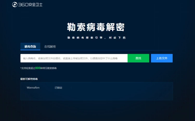 此外,360安全卫士极速版还为用户建设了勒索病毒解密系统,搭载可以检索病毒800种以上的勒索病毒搜索引擎。用户可以通过病毒信息输入和加密文件上传等形式,对勒索病毒进行查询定位,从而更快解决问题。