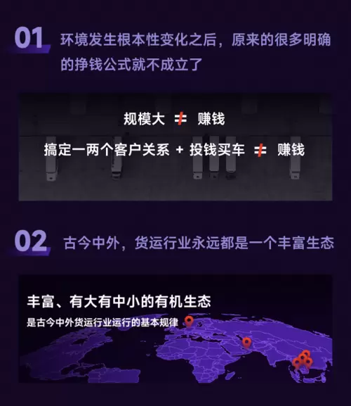 环境发生根本性变化之后,原来的很多明确的挣钱共识就不成立了,规模大不等于赚钱,搞定一两个客户关系+投钱买车也不等于就可以赚钱了。