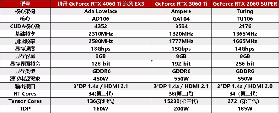 同时本次测试将同时与GeForce RTX 3060 Ti 和GeForce RTX 2060 SUPER进行直接比对。