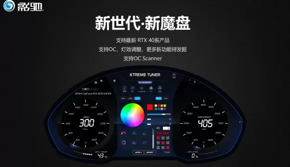 影驰的RTX 40系产品还加入了影驰 XTRME TUNER 新世代‧新魔盘,支持OC、灯效调整,支持OC Scanner等功能!让玩家实现超频,温度监控等等,还有更多新功能等待发掘,尽请期待!