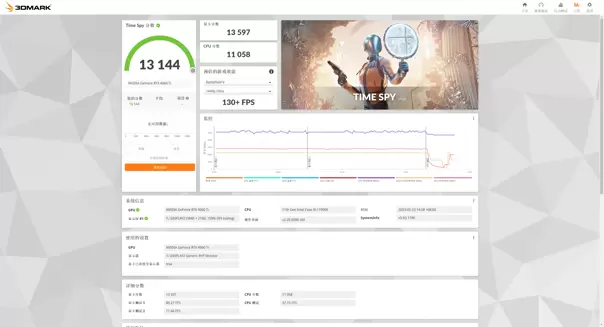 第一项是3D Mark Time Spy DX12 测试,影驰 GeForce RTX 4060 Ti 8GB 星曜 OC 的显卡分数为13597分。