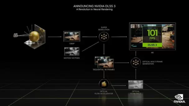 DLSS 是 AI 驱动图形领域的革命性突破,可大幅提升性能,利用AI和GeForce RTX Tensor Cores重建其余的像素,来提高帧率,同时提供可与原生分辨率相媲美的清晰、高质量的图像。该技术通过AI 加速超级分辨率,达到拥有极高分辨率和超高质量的双重体验。NVIDIA DLSS 3技术可以带来高于传统渲染4倍的性能和超快的响应速度,在游戏中为玩家们带来成倍的帧数提升。