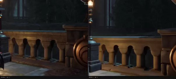 光线追踪技术开启前后的对比是非常强烈的,通过对比图可以看出,在光线追踪技术开启前游戏的细节画面是近乎模糊色块的体现。而在该技术的支持下,游戏画面变得更加的细节,线条以及更方面的体现都给与了玩家更好的视觉观感。