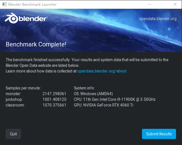 利用最新的Blender BenchMark进行基准测试,可以帮助对于3D渲染相关有需求的创作者更直观的了解到影驰 GeForce RTX 4060 Ti 8GB 星曜 OC 的性能。通过数据可以看到,影驰 GeForce RTX 4060 Ti 8GB 星曜 OC 评分是比较出色的一个分数了。换句话说,该卡对于创作者们的日常渲染基本上毫无压力。