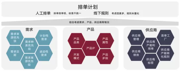 按照森马的供应链模式,服装生产排单需要考虑市场需求、产品情况、供应商能力等多种因素,而且要考虑长中短不同供应周期的产能和订单分配,要把成千上万种款式的衣服,在不同的时间段,按不同的数量分配给几百个生产能力参差不齐的工厂,计算复杂度已经远超人工计算能力,而通用的数字化系统也很难做到实质上的改进。