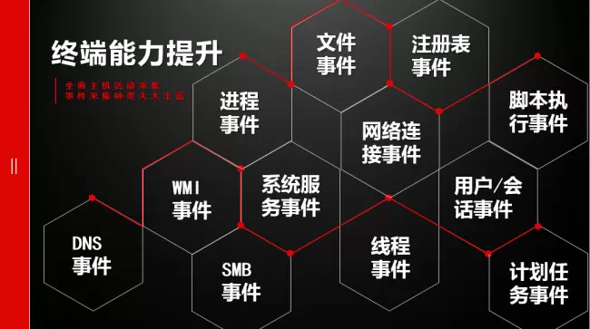 瑞星EDR在终端防护方面引入了全面的主机活动采集、全新的事件处理引擎、IOC-X检测引擎和威胁响应能力,同时在中心分析能力上,大大提升了威胁调查分析能力、威胁狩猎能力、本地威胁情报管理能力和海量日志的存储与检索,这些优势不仅为威胁调查取证、追踪溯源提供了强有力的支撑,同时能够筛查潜在威胁,梳理整个感染链条。