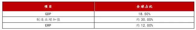 我国 GDP、制造业增加值、ERP 市场规模全球占比