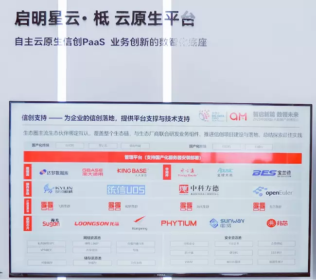 在本次数博会上,启明信息以“智启新篇 数领时代”为参展主题,“启明星云•创ERP产品”和“启明星云•柢 云原生平台”两款产品的发布,更成为数博会上的焦点。