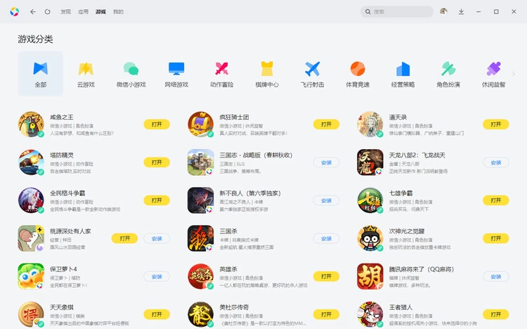 游戏同样是海量的,可以安装完整版,可以直接打开小游戏,也可以玩一玩云游戏。