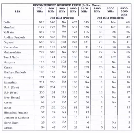 在对印度电信部(DoT)要求的关于在下次拍卖中分配的底价和频谱量的建议回复中,印度电信监管局呼吁分配9个频段的所有可用频谱。
