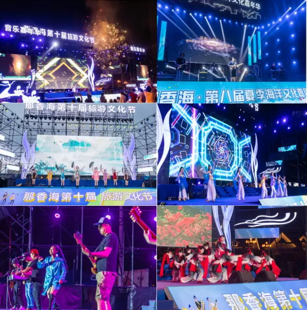 那香海旅游文化节倾力打造国际音乐节这一主题,通过音乐媒介,逐步建设“音乐+”的生活和度假场景。围绕国际艺术和音乐等主题内容,邀约明星举办演唱会以及引进各类主题音乐会,包括乡村民谣音乐会、钢琴音乐会、大学生音乐节、那香海话剧及儿童剧展演等,同时在节日节庆等重要节点组织大型文艺主题晚会,举办端午主题晚会、纪念七一建党102年大型文艺晚会、八一建军节主题晚会、中秋主题晚会、国庆主题晚会等,营造热烈的节日氛围,为观众带来沉浸式的度假体验。