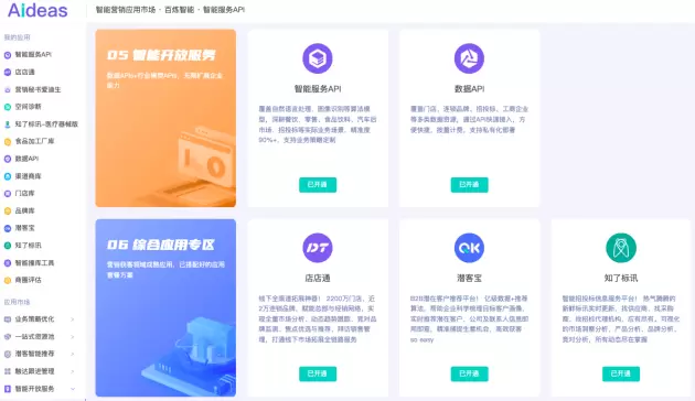 百炼Aideas智能营销应用市场,从智能服务API和数据API切入,致力于帮助企业更好地提升营销数智化水平。
