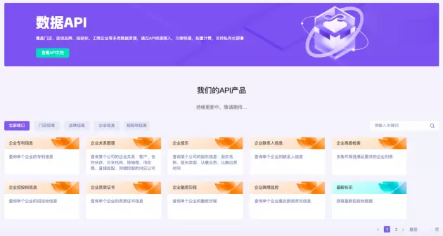 包括招标信息、中标信息、最新标讯等。此外,企业合作伙伴、企业竞争对手、产品采购商与供应商排行等数据接口也即将上线,敬请期待!