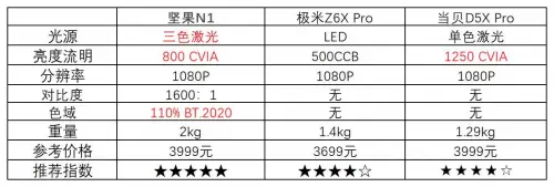 3000价位的家用投影算是入门款,一分价钱一分货,低于这个门槛,投影画质完全不能看,经过综合对比,挑选3款热门投影:坚果N1、极米Z6X Pro、当贝D5X Pro。
