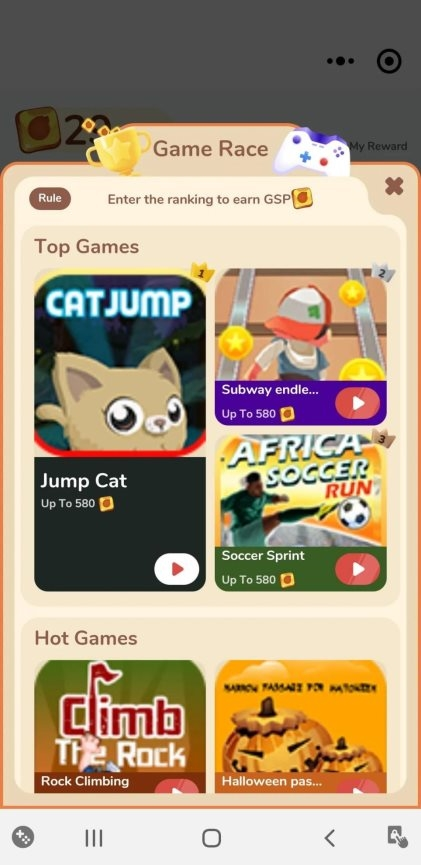 5、热门小游戏:竞技游戏模块精选全球热门游戏。在游戏的选择上,我们会根据对用户地区的调研来匹配,比如案例产品在印度地区,放置休闲、跑酷类的游戏则更受用户欢迎。