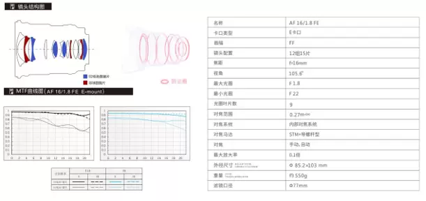 AF 16mm F1.8 FE的画质表现十分优秀,超广视角容纳了更多的画面信息,画面细节清晰精细。分辨率与解析力非常出色,F1.8光圈全开下的画面锐度从中心到边缘仍保持一致出色表现。 内置4枚ED镜片,对色散和色差进行了有效的抑制,画面色彩还原更加精准,高清纳米多层镀膜,减少眩光及鬼影,即使是在非常复杂光线条件下 ,画面表现依然锐利。