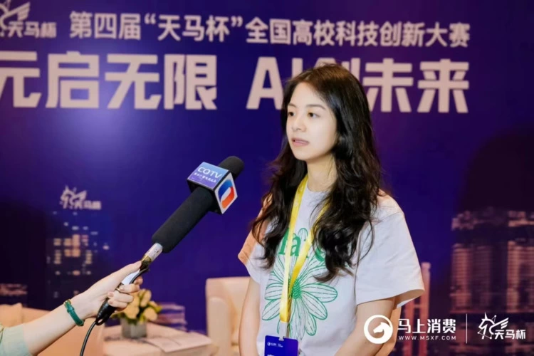 唐晶在第四届“天马杯”全国高校科技创新大赛决赛后接受媒体采访。马上消费供图