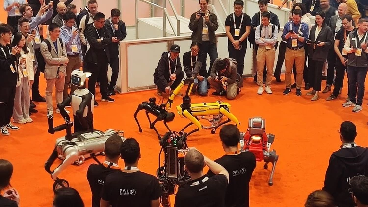 此次会议除了机器人挑战赛外,波士顿动力、戴森、百度、IIT、PALRobotics等知名科技公司还在现场展示了各自在机器人领域的最新技术。其中,IIT带来的ergoCub人形机器人,专为与人类进行符合人体工程学的交互而设计,身高150cm,体重55.7kg,可远程实时操控。PALRobotics则带来了KANGAROO袋鼠机器人,该机器人重量轻,腿部运动惯性小,适合跳跃和跑步等高动态运动。