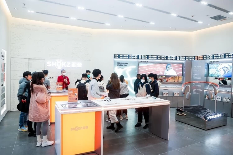 成立于2011年的Shokz韶音,一直专注在不入耳耳机赛道,数十年的专注和专业,成就了韶音在运动耳机行业的领导地位,成为了用户心目中名副其实的运动耳机第一品牌。2022年底,随着品牌业务、知名度和影响力的日渐增长,Shokz韶音也开始在渠道侧发力,全球首家品牌旗舰店在深圳福田OneAvenue卓悦中心开业亮相,让产品能够以一种更直观、更直接的方式,更好连接到行业客户和大众人群,并且更好地展现Shokz韶音品牌的形象和风格。