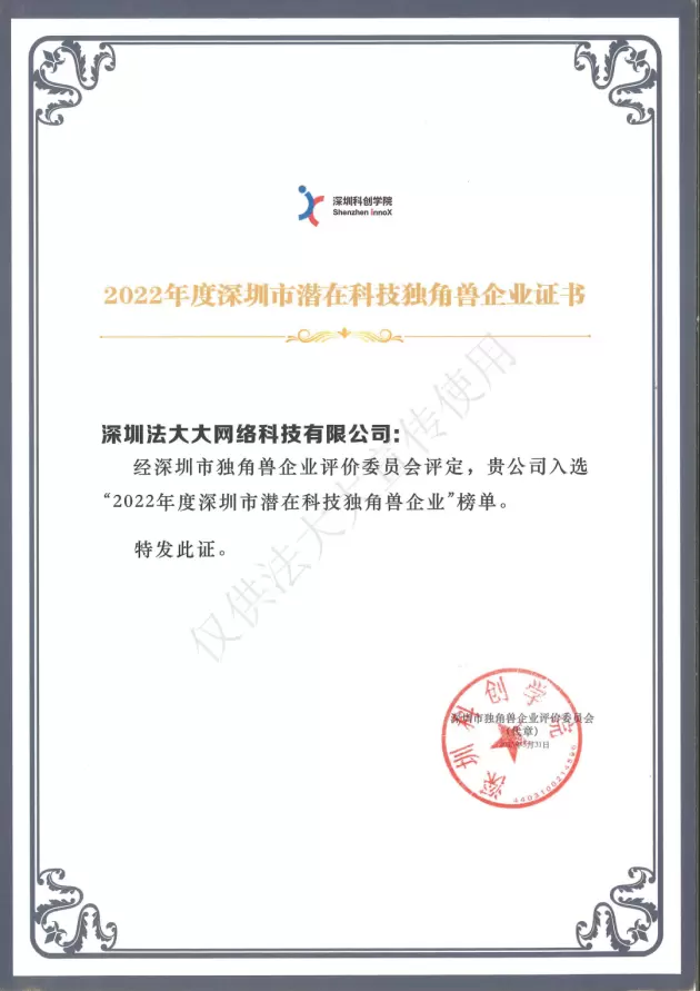 重磅!法大大上榜深圳市潜在科技独角兽企业