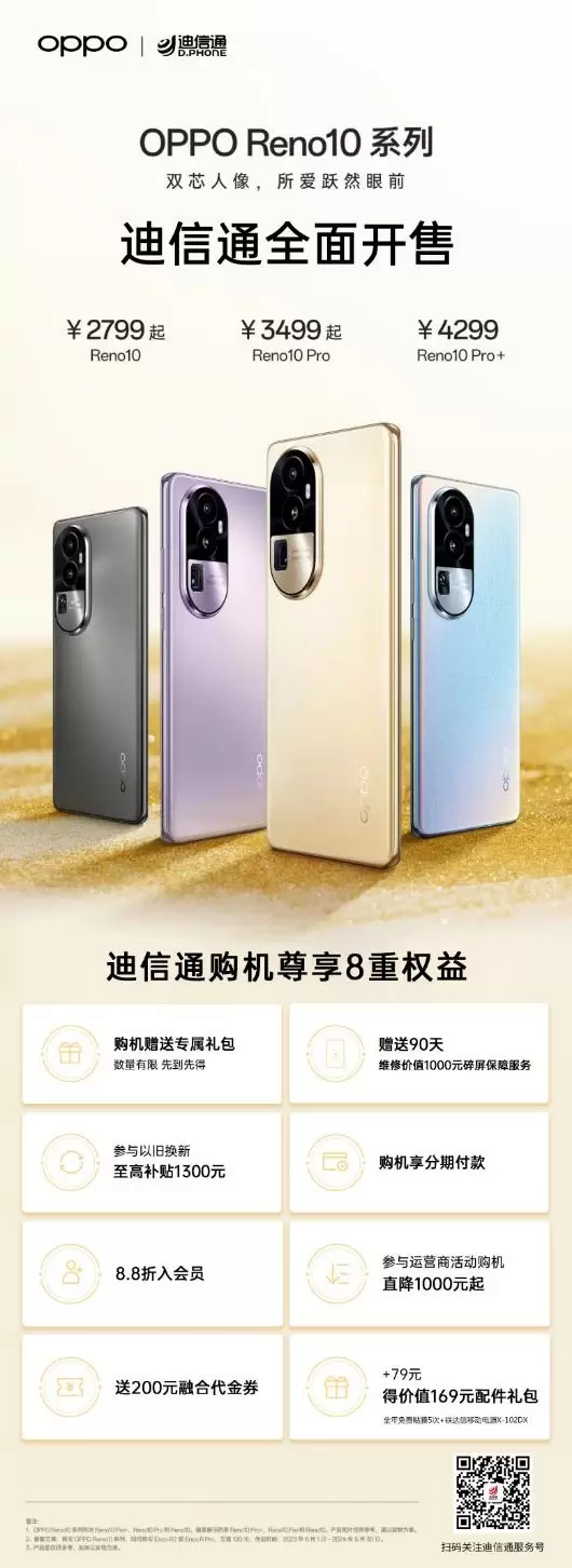 现在,OPPO Reno10系列正在迪信通火爆热销中,全系2499元起,购机可享赠送专属礼包、以旧换新至高补贴1300元、运营商活动购机直降1000元起等8重优惠,感兴趣的朋友千万不要错过。