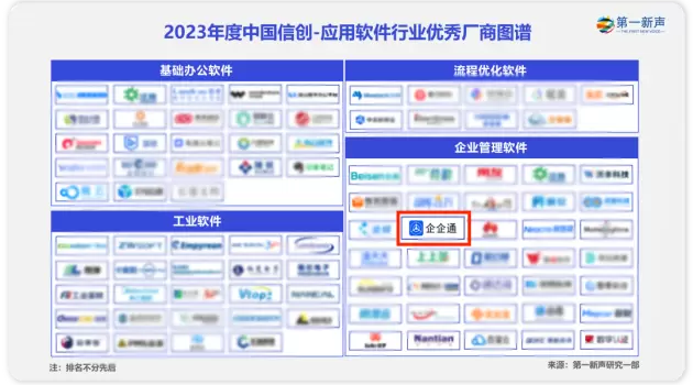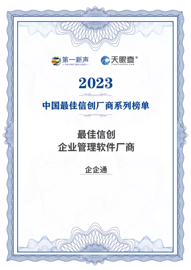近日,由【第一新声】联合【天眼查】征集的2023年中国最佳信创厂商系列榜单正式发布,企企通成功入围“2023年中国最佳信创厂商50强”,并荣膺“最佳信创企业管理软件厂商”称号,信创能力再获认可!