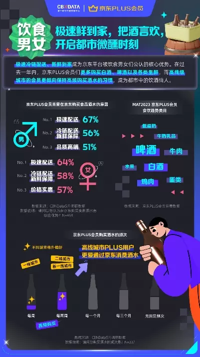 根据CBNData的5月调研数据显示,京东PLUS会员中超六成用户表示,极速冷链配送是他们喜欢在京东平台购买食品酒水的重要原因。新鲜到家、方便快捷的配送优势,叠加上品质高端、价格实惠的商品选择,为饮食男女们带来了购物体验的升级。