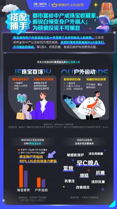 6月7日,第一财经商业数据中心(CBNData)联合京东PLUS会员发布《我的生活高光时刻——万千京东PLUS会员的2023消费趋势图鉴》,聚焦于京东PLUS会员用户的人群画像、消费特征及品类偏好趋势的全面解析,洞察2023年高价值人群的消费需求之变。