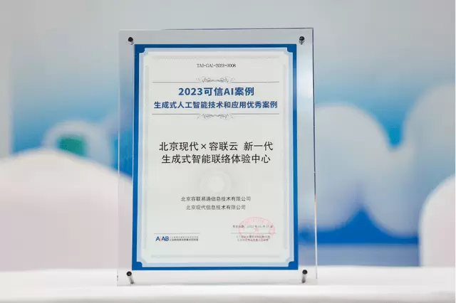 杭州通用人工智能论坛暨AIIA人工智能产业发展大会近期召开,容联云受邀出席峰会,并通过北京现代汽车—新一代生成式智能联络体验中心应用案例,获得中国信通院2023可信AI案例及生成式人工智能技术和应用优秀案例。