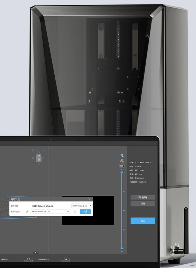 我们知道,消费级光固化3D打印机的精度与屏幕的分辨率相关性非常大。在当下以8K屏为至高配的市场环境下,ELEGOO爱乐酷Saturn 3 Ultra土星升级配备了ltps制程工艺10英寸12K单色液晶屏,具有11520×5120的超高分辨率和500:1的高对比度,屏幕一致性高,性能强劲,透光性达到4.5%,打印速度能达到150mm/h,层曝光固化时间缩短至1.5-3s,将显著提高打印效率的同时还原模型的生动细节。土星3U还采用全新Linux系统方案,内置4G板载内存,整体性能更稳定,传输更快。