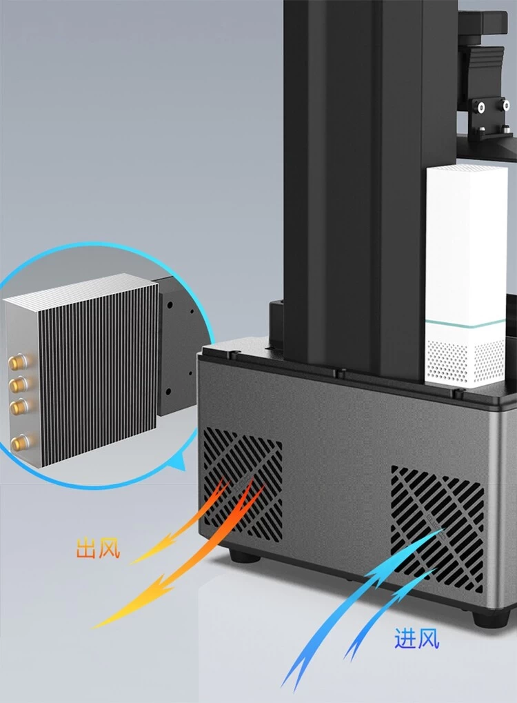 土星3U采用4根纯铜导热管加风扇结合的独特双导热散热设计,使发光源恒温低于60度,使散热性能更高效,显著减少了光衰现象,延长了3D打印机的光源使用寿命,电机采用静音TMC2209驱动,让Z轴运行过程中比较静音,有效降低机器打印噪音,实现低分贝运行,营造更舒适的打印环境。