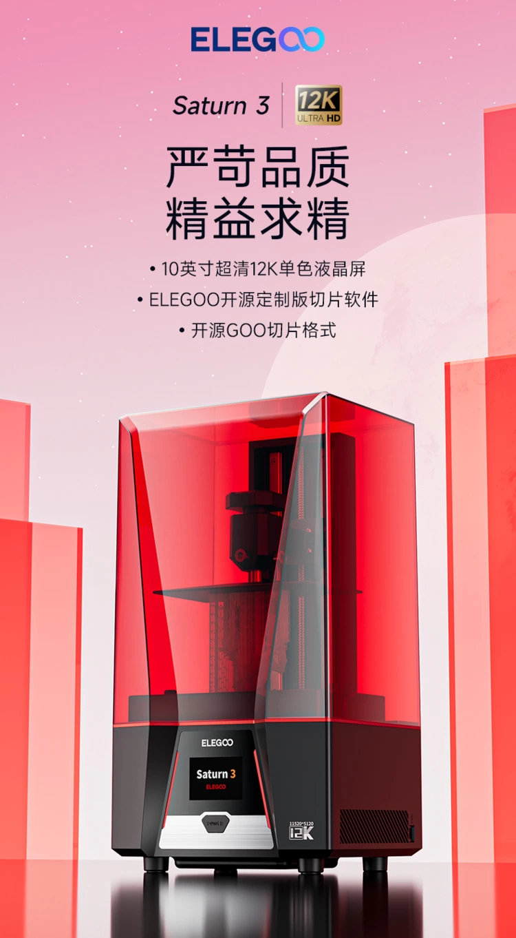 不止10英寸超清12K ELEGOO爱乐酷Saturn3Ultra、Saturn 3强势发布