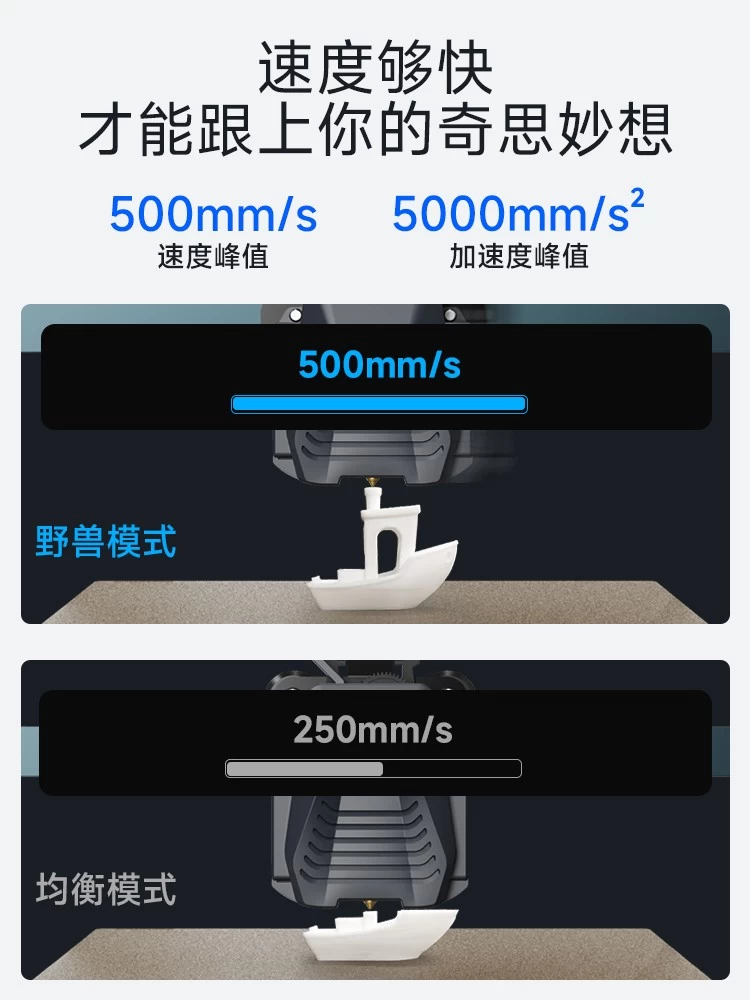 ELEGOO爱乐酷Neptune 4 海王星卷王机支持500 ㎜/s峰值打印速度以及5000mm/s²的加速度,并搭载 Klipper 64 位 1.5G 主频 4 核高性能处理器,小身躯释放大能量为打印提供充足的算力,拥有高能快速模式,激发性能潜力,火力全开,大大节省用户等待打印时间,引领消费级FDM 3D打印机进入一个全新的超高速时代。