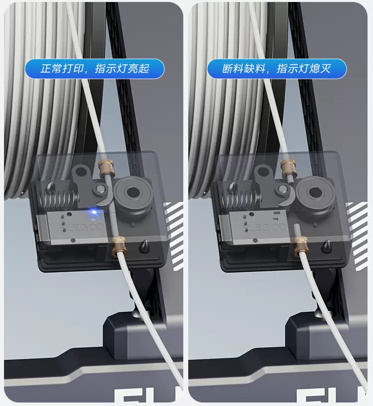 海王星4可通过手拧螺母来调节皮带松紧度,皮带松弛后方便调节,提高打印精度;同时加宽 Y 轴型材,打印更稳定。并且还支持智能双重保护,支持断电续打+断/缺料检测功能,能够避免在打印过程中意外断电情况下导致模型报废,缺料会自动响应并暂停打印,避免耗材缺失而机器空打的情况。