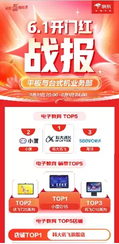 科大讯飞全力支持京东618 好货好价全渠道发力 稳占电子教育类竞速榜冠军