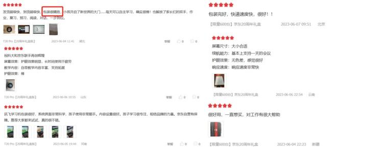 从京东可以看到,此次618期间消费者不仅对20周年纪念礼盒纷纷点赞,也对科大讯飞的产品性能等大加赞赏,纷纷晒单并表示“很好用”、“包装精致”等。科大讯飞学习机T20 Pro是首款搭载讯飞星火认知大模型的AI学习机,有中英作文类人批改和生成等功能,孩子能够获得像真人老师一样的互动辅导,实现更个性化的精准学习。京东618期间到手价为8799元,并赠送价值899元的讯飞翻译笔。