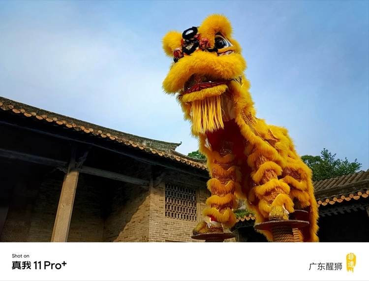 “有华人之处,必有醒狮”,起源于唐代宫廷狮子舞的广东醒狮,融合了武术、舞蹈、音乐等,具有吉祥如意之意,每逢节庆,或遇有重大活动,都会以醒狮助兴。王冰冰不仅亲自体验了舞狮,还用真我11 Pro+拍下了师傅们舞狮的精彩瞬间,金黄色的狮子站立在梅花桩上,昂首挺胸,威风凛凛,狮子圆润的黑眼珠简直栩栩如生,而眼睛周围的绒毛也细腻呈现,黑白分明。