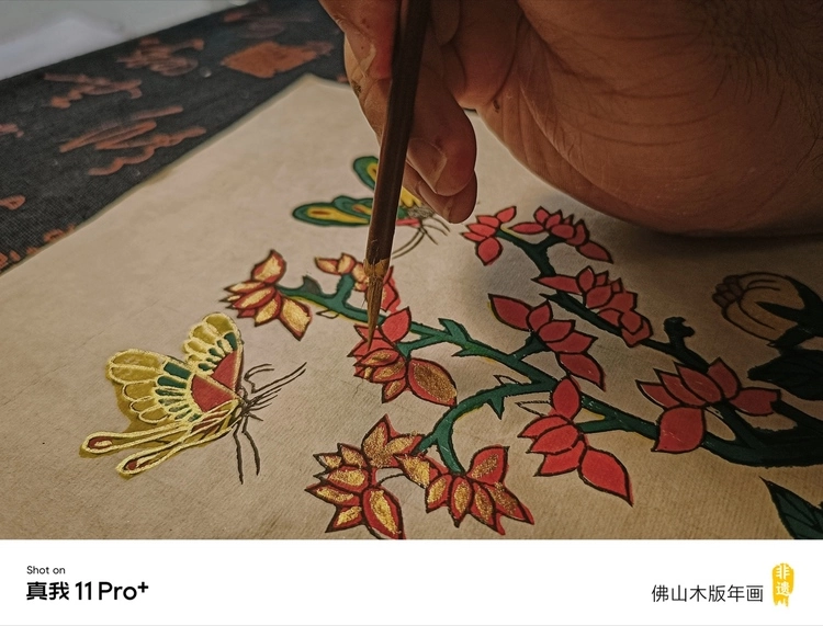 此外,王冰冰还用真我11 Pro+记录下传统粤剧、佛山狮头扎作、佛山木版年画、香云纱、铜凿剪纸等非常富有岭南文化特色的非遗项目,无论是粤剧演员的动作、神态,还是戏服上的褶皱与质感,这些细节都纤毫毕现。而其它非遗作品的创作过程,在真我11 Pro+的2亿单镜变焦相机的记录下,或灵动写实,细节还原到位,或质感丰盈,别具一番韵味。