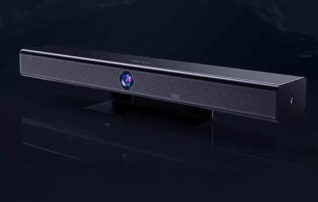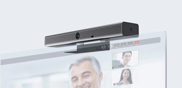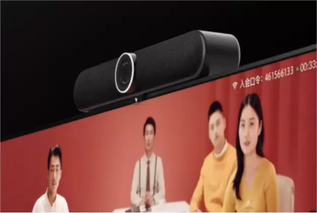 这款产品被称为会议室显示设备的百搭神器,外观像一个条形的音响,小体型高度集成了摄像头、麦克风、扬声器、视频会议主机于一体,开视频会议不用再接一大堆设备,也不用担心云会议软件兼容问题,将这款视频会议神器一线接到投影仪、电视等任一显示设备,就能满足异地高清视频通话的需求。