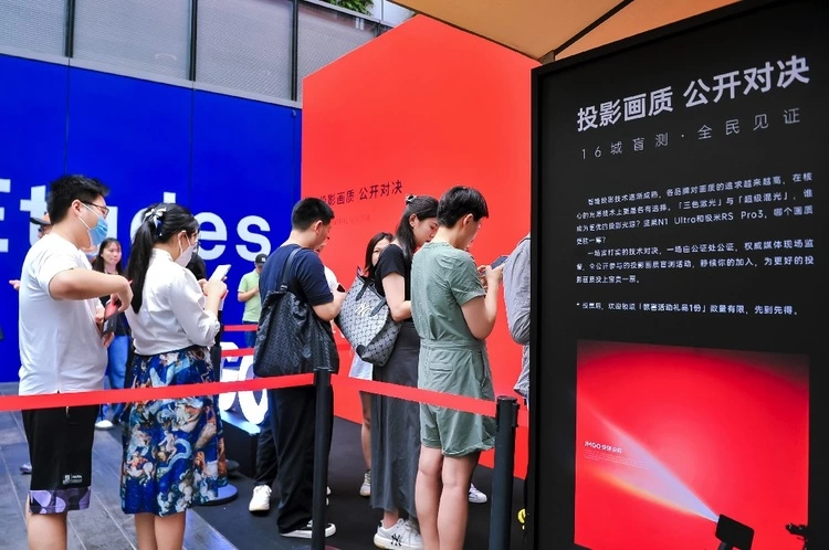到底三色激光和“超级混光”哪种技术更好,谁能够带来更优的画质体验?辩论再火热,也不如亲眼见证更让人信服,这也是整场辩论的结尾处双方留下的另一封“战书”。仅仅9天之后,坚果就在全国16城进行公平公开公正的产品线下对比盲测活动。