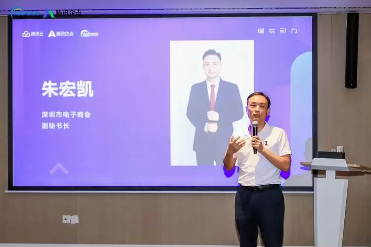 深圳电子商会秘书处副秘书长朱宏凯在致辞中表示,腾讯与思普达强强联合,举办本次活动非常有意义,特别是在行业行情低迷之下,急需解决之道,提供方案路径。其次,对商会概况作了说明,分享了越南考察团、浙江考察团等国内外市场情况。