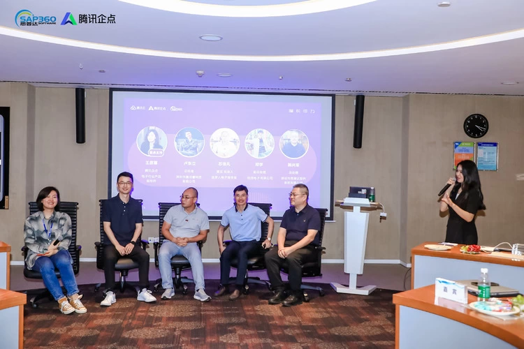 腾讯云SaaS渠道中心副总经理戴正超,深圳电子商会副秘书长朱宏凯,思普达软件总经理韩兴军与30多位电子元器件分销行业人士参与了本次私享会,共同探讨了电子元器件分销行业如何应对当前行业形势和数智化升级!